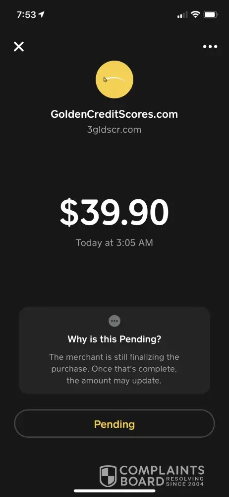 Golden credit scores.com keeps trying to charge my cash app card $39.99 for a credit score membership I cancelled at least 5 months ago please handle this and stop trying to charge my card my account shows several different times that a charge was put thru and denied starting on 3-1-22 till now I have 52 different times a charge was put against my card and it was denied because after the 1st couple times of u all trying to charge my card I put in for the payment not to go through because I've asked u all to cancel my account and oviously u all didn't so please stop trying to charge my card