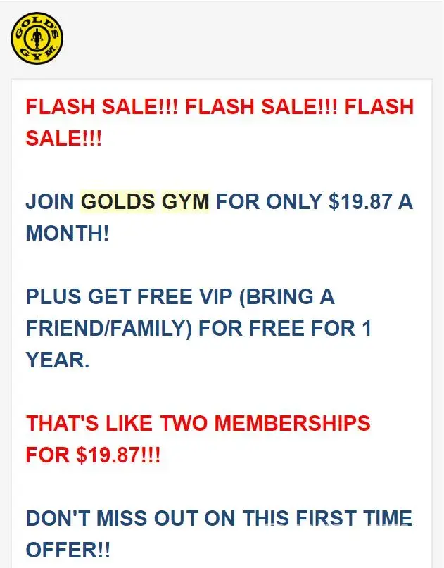 I do not like how Gold's Gym advertises membership offers. Here is what I