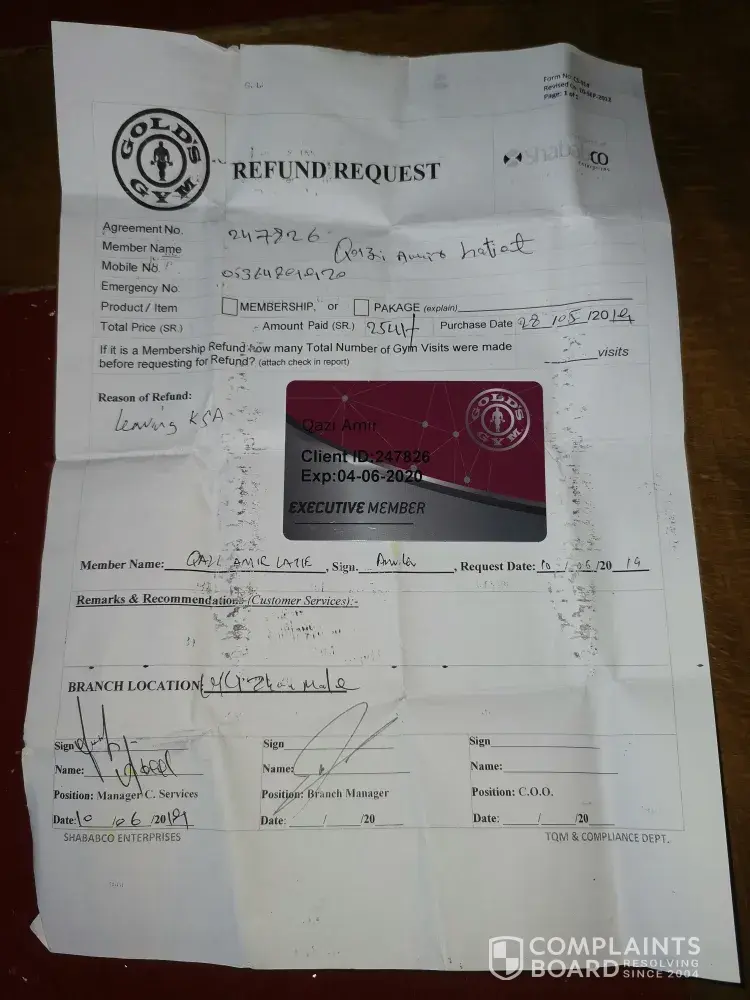 As I tried with the sales people to solve this issue as they don't have a branch manager at the moment and I don't know who else I should talk to, noting that I was informed that the sales people don't want to sell any new memberships again due to some internal problems that are none of my concerns, apart from the mistreating and the very bad attitude of the reception staff that's not expected from a Gold's gym that is a well-known brand all over the world, and this is not the right way they should treat their clients, I would like to receive a Full REFUND for my membership and PT as I am very unsatisfied with the services and the treatment.