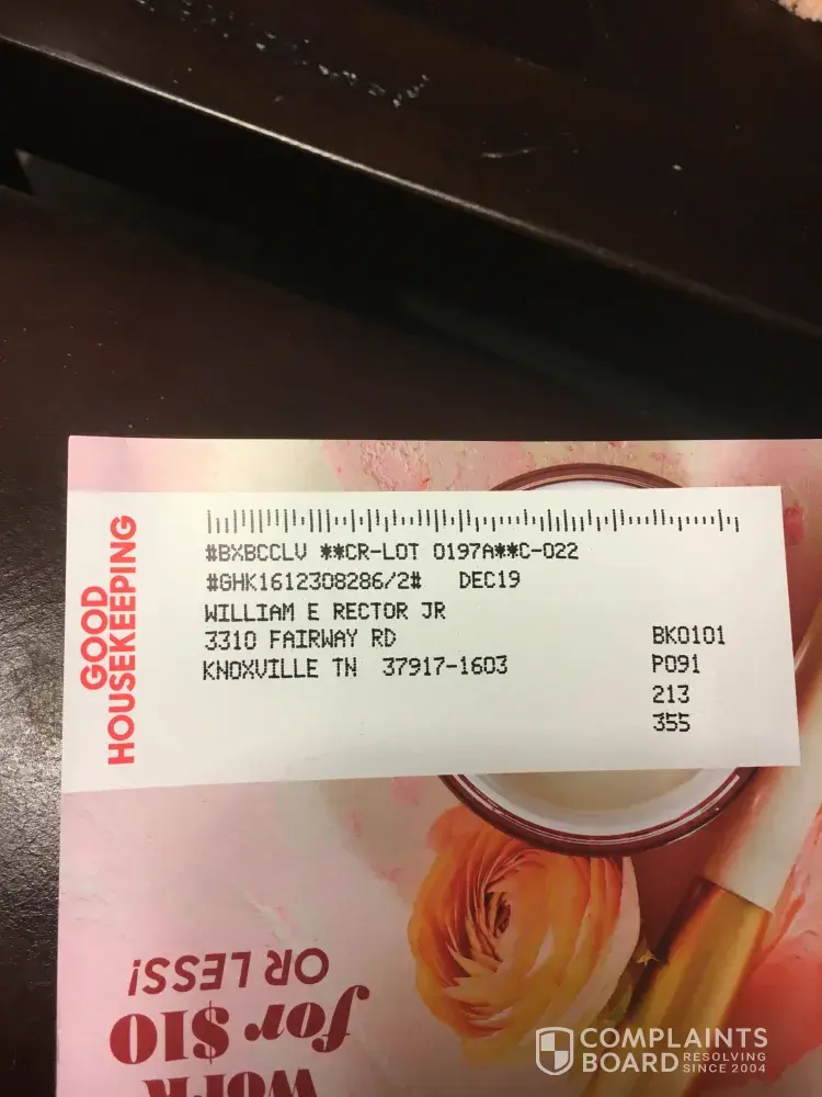 Below, is an email message I sent to Good Housekeeping Magazine's Customer Service: