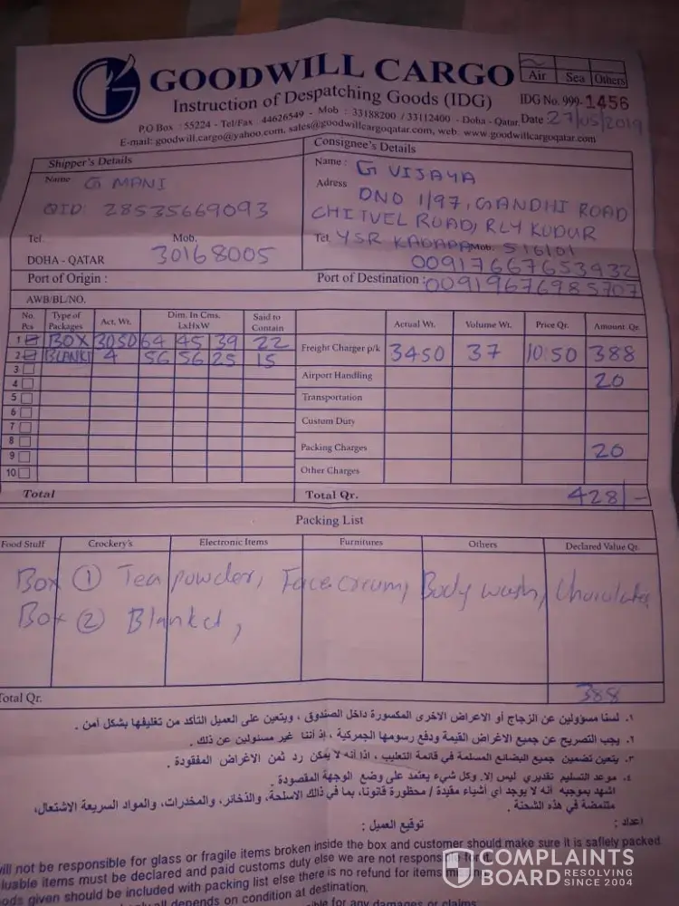10 Goodwill Cargo Qatar Complaints