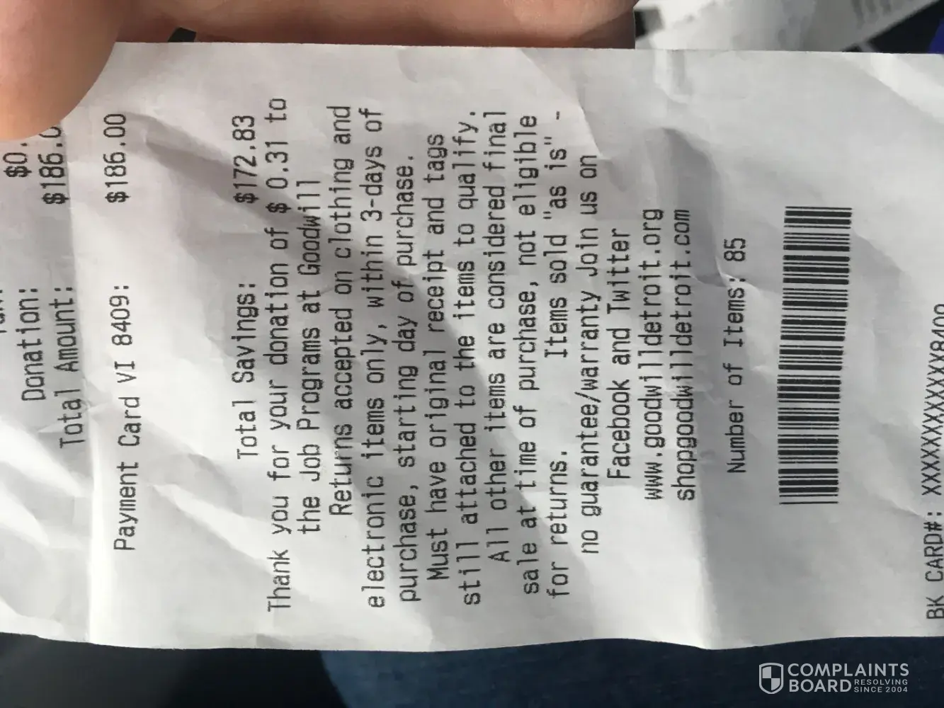 I am unable to return two clothing item I bought. I was unable to try my clothes on because the dressing rooms were closed until further notice. I purchased my clothes on Fri. 11/15 at 6:32 at the Goodwill on West Rd. In Taylor, MI and spent $186 that day. The receipt said I could return it within 3 days. I tried to return my two clothing items on Mon. 11/18 at 3:30 pm. I even talked to the manager. They wouldn’t allow me to return them because they say they count Friday as the 1st day (but that isn’t even 24 hrs later). I didn’t even get the item until 6:30 on that day! I consider 24 hrs as 1 day! This doesn’t make any sensee to me at all. So 3 days from Friday is Monday. What is going on? I don’t understand why they don’t even honor what is printed on the actual receipt!