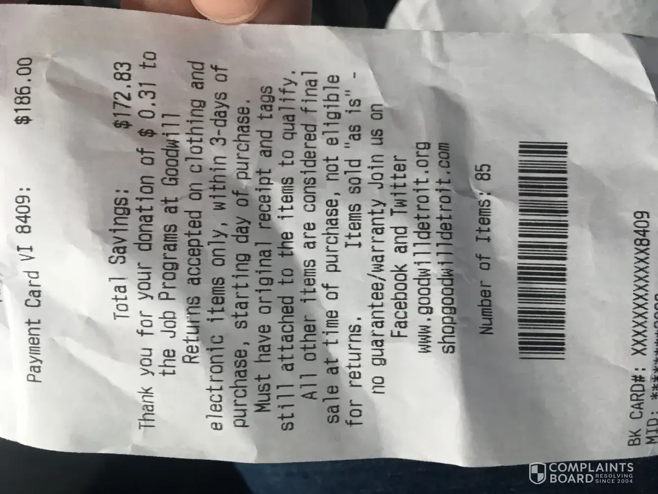 Let me start by saying we have gone to Goodwill for around 35 years. In that time we have donated & we have purchased a lot of things. I can still remember the first thing we purchased. I have seen a lot of changes over the years. From stores being closed, to taking away senior days in the stores. At this time I go to 3 different Goodwill stores. But I may...