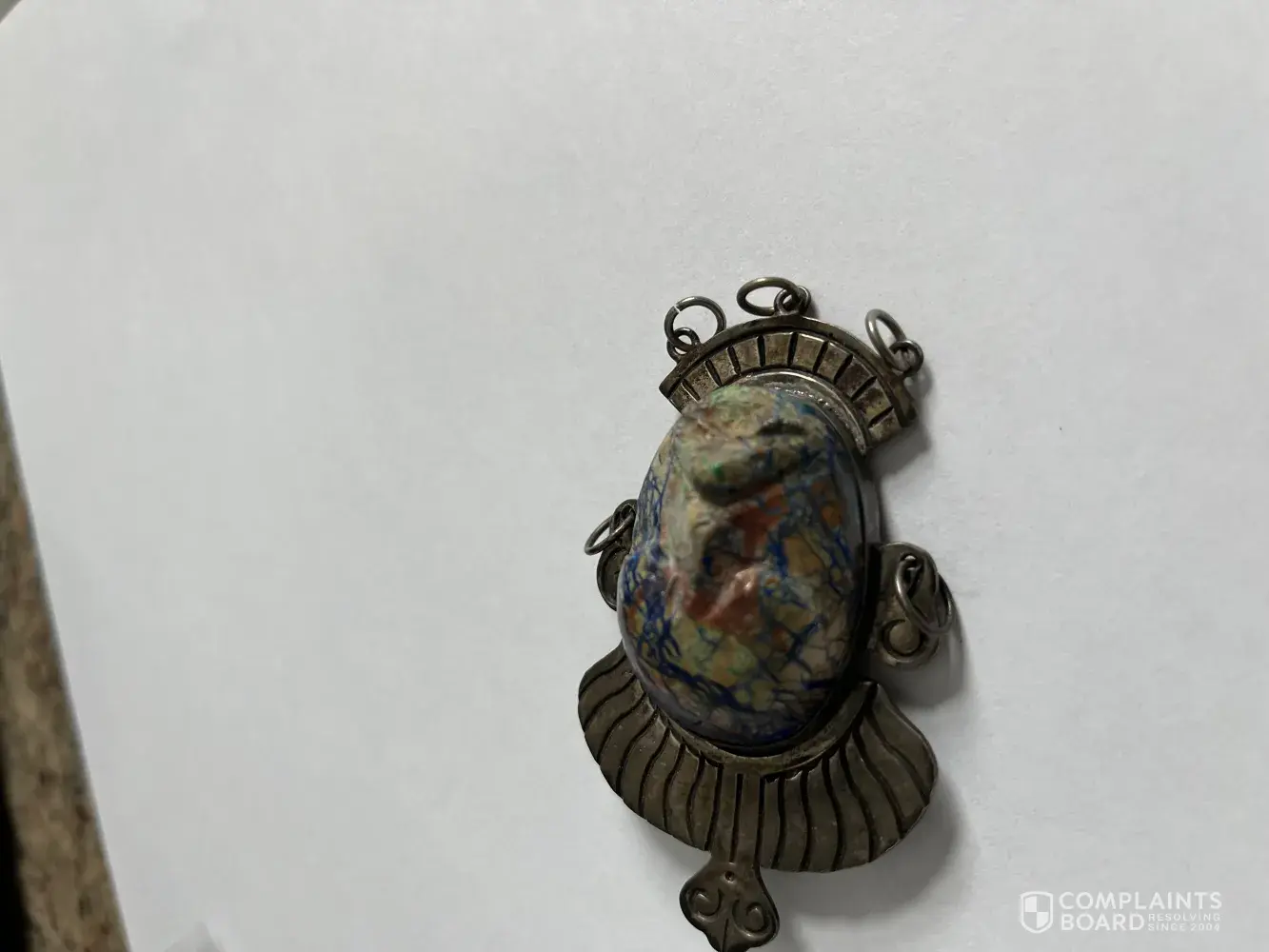 I won the subject item, a carved painted Stone Face Mexican Pin. The listing did not disclose nor describe any damage. Likewise, the pictures provided in the listing did no show any damage either. However after winning the bid for $43.00, plus shipping charges of $12.07, Handling charges of $3.00 and additional tax of $3.70 for a total of $61.77, I received...