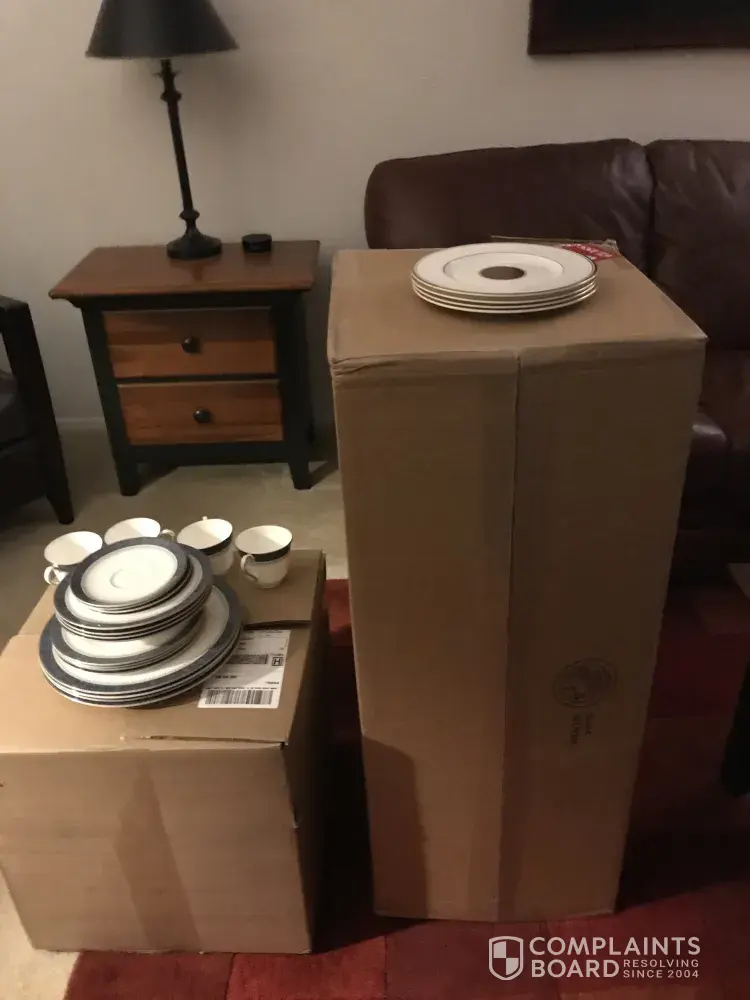 When I opened a customer service ticket to question how four saucers and four cups could possibly weigh 25 pounds and that even combining items under 20 pounds was not allowed, I got an insufficient response that said it required over-size boxes because of "dimensional weight". Not true. There was no reason for a 36"x14"x14" box to be used for only four plates. (I even have a manager of 3 UPS stores that I consulted say that this was overpacking and that many more items could safely be put in a box that size even if packaging was needed for the products fragility.)