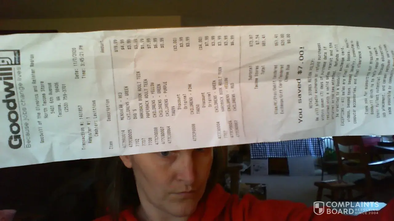 I visited the 6th Avenue Goodwill in Tacoma WA on 11/07/2020 and purchased several items for my daughter (totaling roughly 85 dollars), one of which we did not end up having a use for so I attempted to return this pair of pants today 11/13/2020 (within the allowed 7 day timeframe). On 11/07/20 we were checked out by cashier Leviticus at check stand one. He...