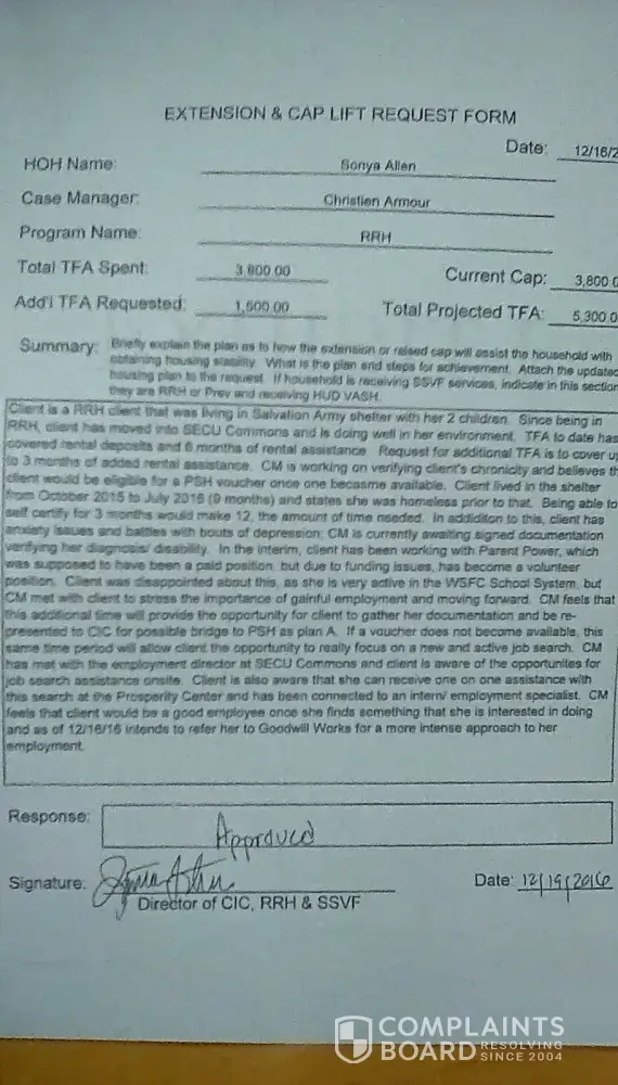 My family was in Rapid Re-Housing in Winston-Salem N.C. We was at the Salvation Army Center of Hope. Christian Armor was my case manager. I got a place at SECU Commons. Christian ended my assistance. I have found through a Justice Department statement that I was only being talked about in conversation between Christian and my landlord. Resulting into my family having a money judgement put against me and being evicted. We are homeless again. No room at shelters in Winston-Salem so we had to drive to Davie County just to seek shelter. I'm feeling overwhelmed that my family has become victim to this system that was intended for homeless prevention. My children or anyone esle children deserve this.