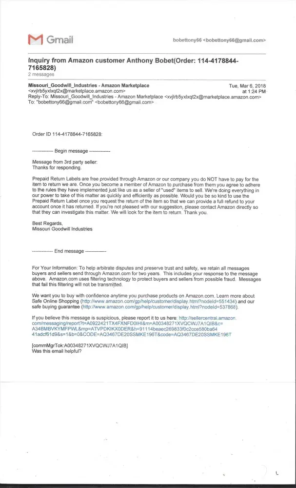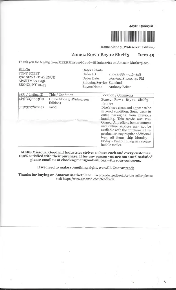 My name is Tony Bobet I resided at 1710 Seward Avenue, Bronx, New York City, 10473, Apt#5G, Telephone# [protected]. I am filing complaint to MERS Missouri Goodwill Industries, located at 1727 Locust Street, St. Louis, MO 630103, Telephone# 314-214-3464. I order an item online. the item I order it will explain for you. And, I hope you could help me.