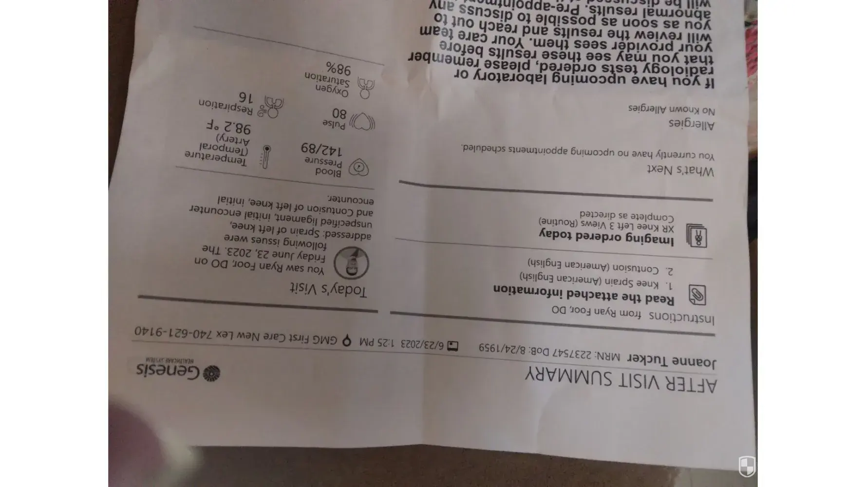 On June 22nd, 2023, I shopped at Goodwill Industries in New Lexington, Ohio. As I exited the store through the front door carrying a storage tub with contents, I fell and injured my left knee. Once outside the front door, the sidewalk goes into a downward slope leading into the parking lot. The next day, my knee had swollen with increased pain. I went to...
