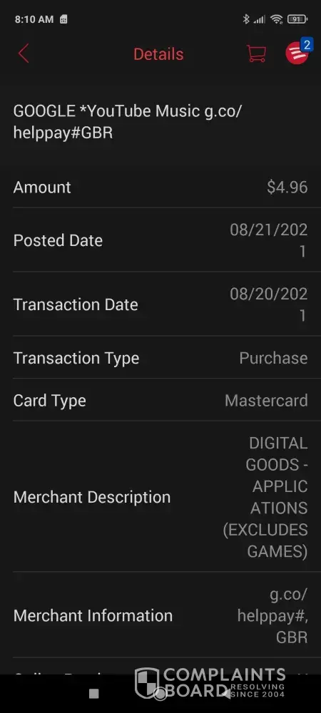 Google Unauthorized Debit Card Charges