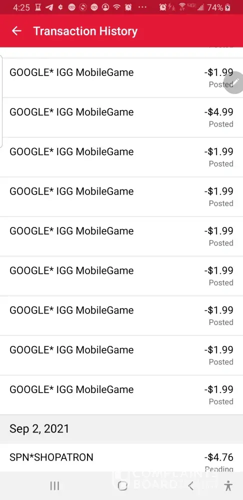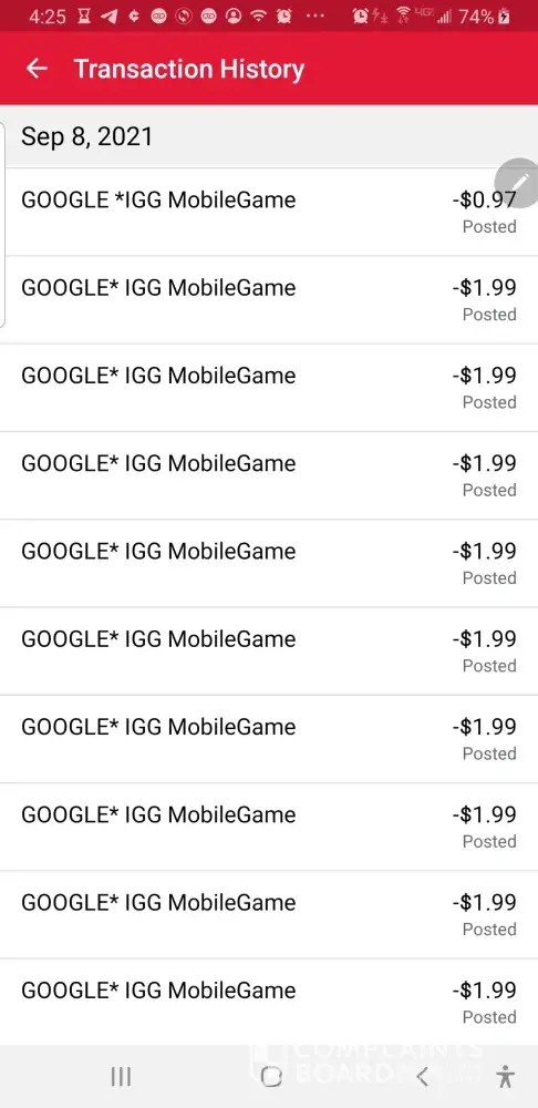 Google*IGG MobileGame $1.99 (17x) =$84 on 9/8/21