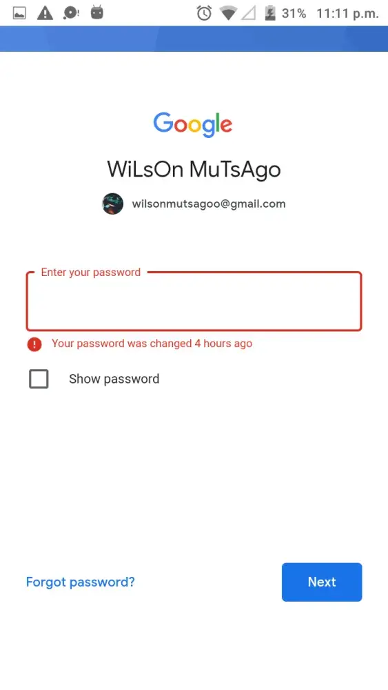 I received a notification that my Google account password had been changed, which I had not changed.
