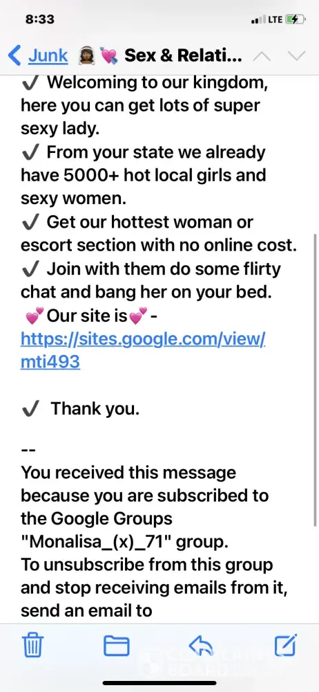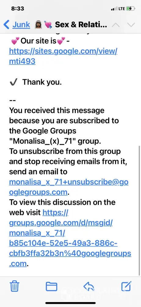 I am getting on a average of 100 e mails a day from either a spam list from google groups re sex crap I am tires of it I have unsubscribed if it allows you