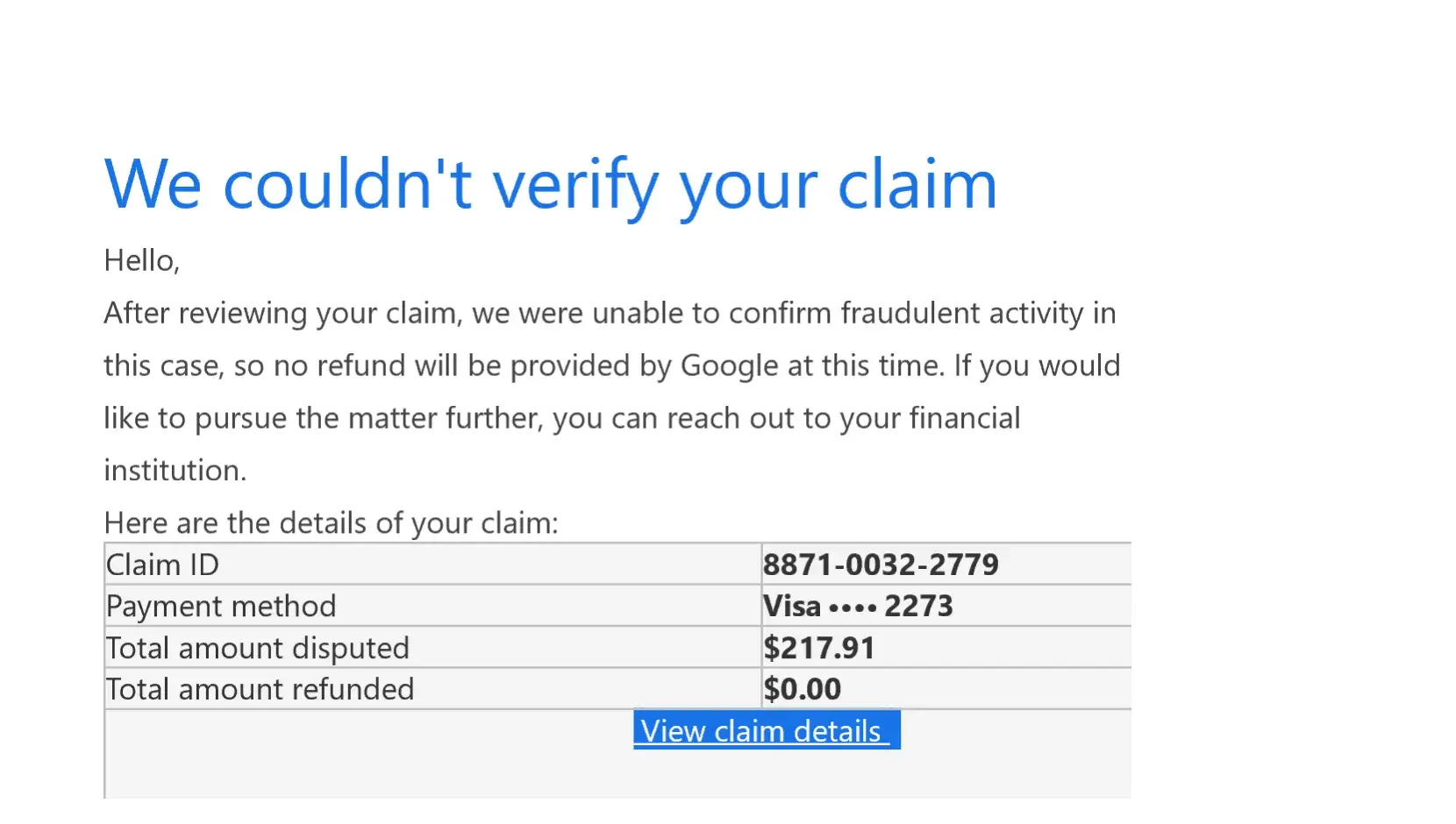 On 09/03/2020 I had a charge for 169.99 for something called google fax and a 29.99 charge for google as well and these charges were made in London. I immediately notified google and advised I didn't make these charges and I received a email stating to check with my family members as they probably made them. I have no family members here and no one else had my card. I had just recently saved my credit card info on my google account when I purchased youtube and I'm assuming they got them there as there was no other way. I am drawing unemployment and there is no way I would spend 170.00 on anything right now much less faxing. I notified my bank (way 2 go program) and they credited the money back and then 3 months later reversed the credit stating the information they received from me is conflicting with information they received from google. This has caused me all kinds of problems and I feel google owes me my money back.