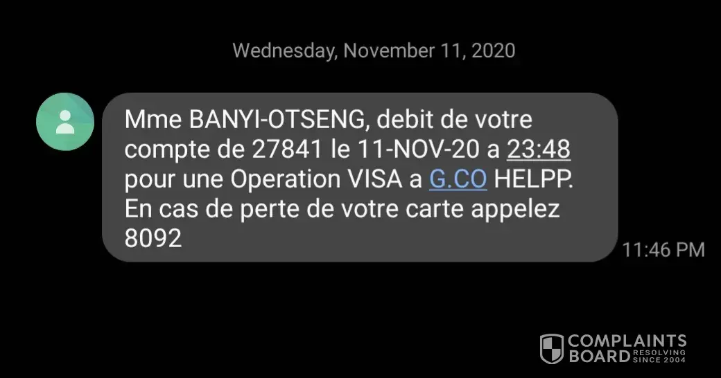 On the 11th November 2020. I received a message of a payment i have made to GO.CO HELPP. This is a visa operation I never made!