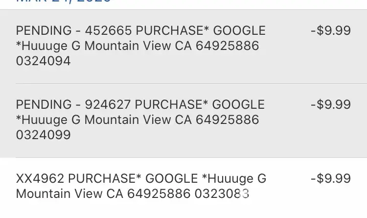 Google unauthorized charges