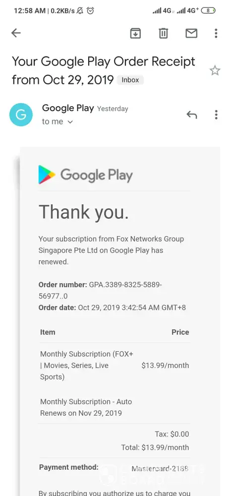 Upon checking, the payment was from fox plus. I was charged the US rate of 13.99 us dollars because my google play account was set to US by default. My supposed bill should only be 249 pesos which is only about a third of what I was charged. Please look into this. Thank you.