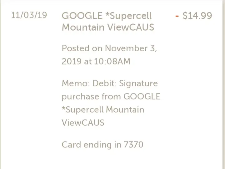Why does google do this. Take money from bank accounts that they have no business taking. This same thing happened to my brother only for alot more money. On Oct 8, 2019 a debit of $10.78 was taken from my American express bluebird card. I have not nor ever purchased anything from Google *Warner bros. This was taken from my account without my permission and without cause. Please refund $10.78 to my account. My debit card number is [protected]. My name is Cheryl dennis.