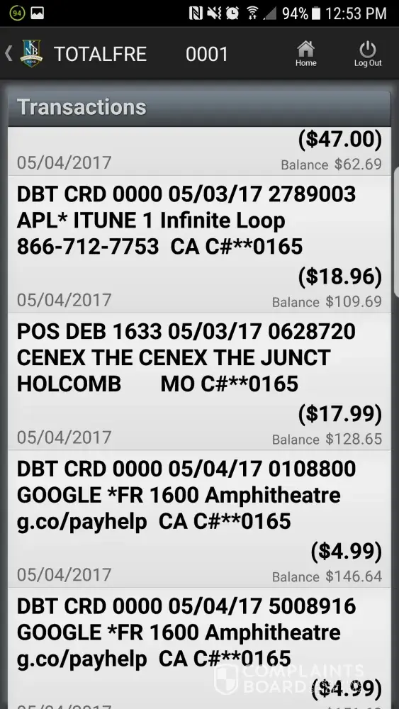Today, 5/27/17, i received in the mail a letter from my credit card company saying that i was late on my payment. i have not used this card since november, 2016 so i got online and found these charges on my account: