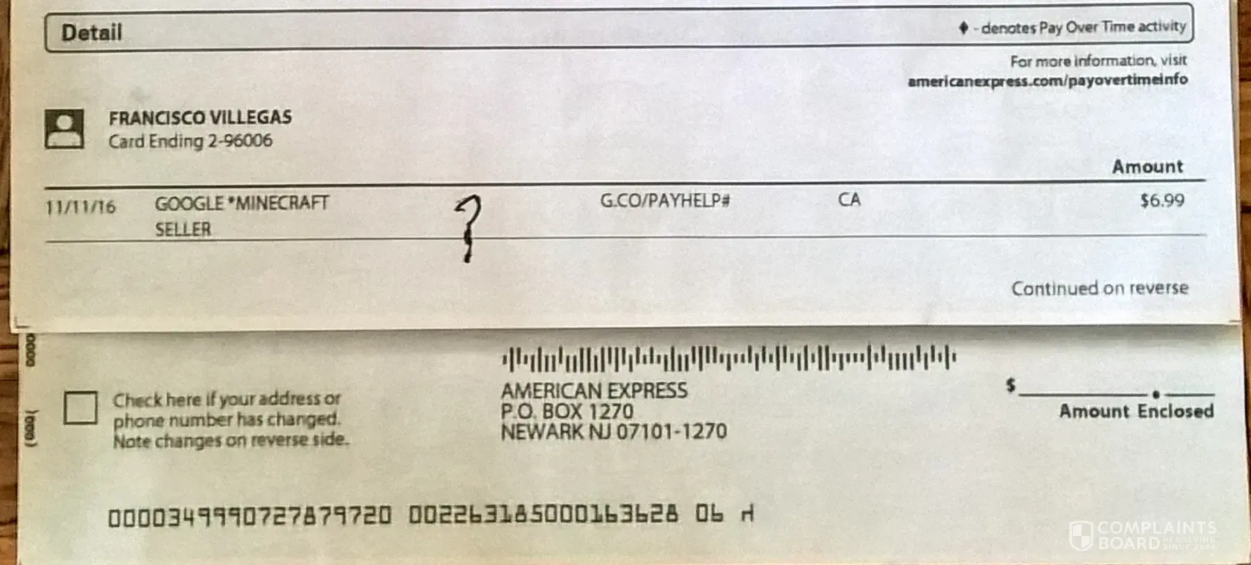 Unauthorized charge of $6.99 on American Express Card (Account Ending 2-96006)