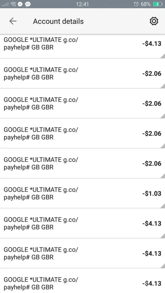 There have been numerous small amounts recently taken from my bank account. I do not know how google help got my card details in the first place? So basically there has been unauthorised payments taken from my account without me even using Google help to even be charged and I want to be refunded immediately as this is Google's mistake not mine. I have attached photos of my bank statement of some of the payments that I have already been MI's charged for.
