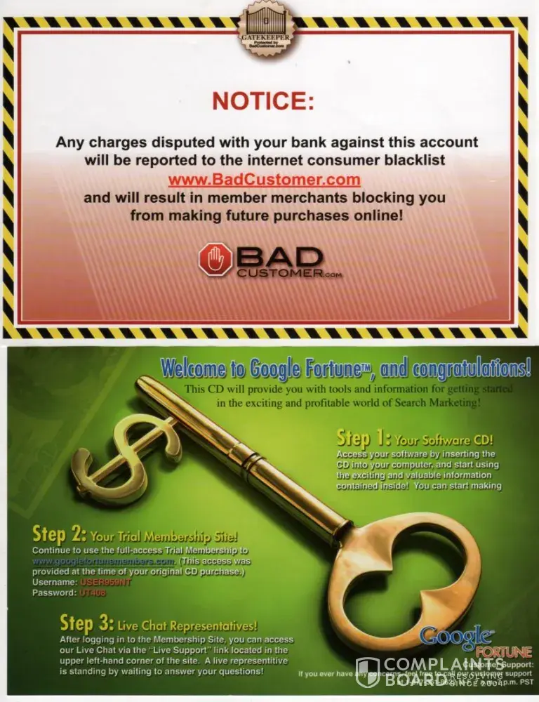 To help you get started, we offer an 8-day trial of the Fast Cash from Google program for the low price of $1.99. You can determine for yourself if this product is right for you. When you submit your order, you agree to pay the initial fee of $1.99. You are given immediate access to the program for 8 days from the date of your submission. If you find that the product is not right for you, simply call our Customer Service Center at [protected] or send an email to [protected]@tofindfreemoneynow.com to cancel before the end of your 8 day trial period and you will not be charged anything else. Your 8 day trial period begins when you place your order. If you cannot access the system after submitting your credit card information, please contact our Customer Service Center.