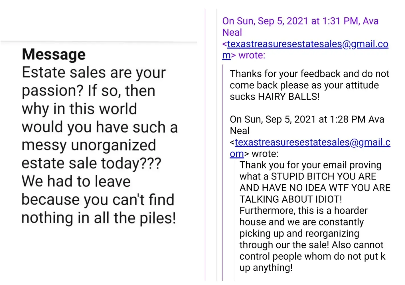 8/15/2019i do not know a kathy l. and never have signed a contract with her. furthermore, if there are antique items that still have an old prices on them that just adds to the value so we do price accordingly as we do not give our customer's items away for pennies like a garage sale. obviously, you had a lot of old crap and trash in your sale that needed to be thrown away by you! we do not come in and just start throwing your property away as we are not your cleaners! we do not overprice anything thank you! we are here to make our customers the most money and are fair to everyone so stop your lying! we do not ever cause damage to anyone's property and have professional knowledgeable men at each job that carry their own tools to handle unhooking all appliances and moving them to protect the customer's property! so you are a hater terrorist lying deceitful hateful woman! obviously, the old fridge had never been taken out nor replaced and there was another issue in the wall that was leaking. we never leave any water leaking at any job and if it does then it is turned off at the road meter! we are not idiots and know what we are doing as this is a family owned business with educated pros in construction home improvements and other fields. you are a lying devil woman! finally, we write tickets on every sale and provide our customer with their copy so, you are lying devil again! maybe you need to consider whom was living in the house and not take care of anything like you! I hope you reconsider posting about others once you get this response and it is not beneficial and people are not going to put up with it!