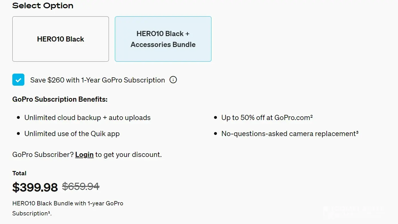 On the 23rd July 2022 I was about to purchase a GoPro Hero 10 deal that is laid out in the picture (with red background) at a purchase price of A$529.95 and included a battery, 32gb sd card and a new 1 year subscription to GoPro. When I clicked into the deal, you can see in the other picture that the price changed to A$559.95, so A$30 more.
