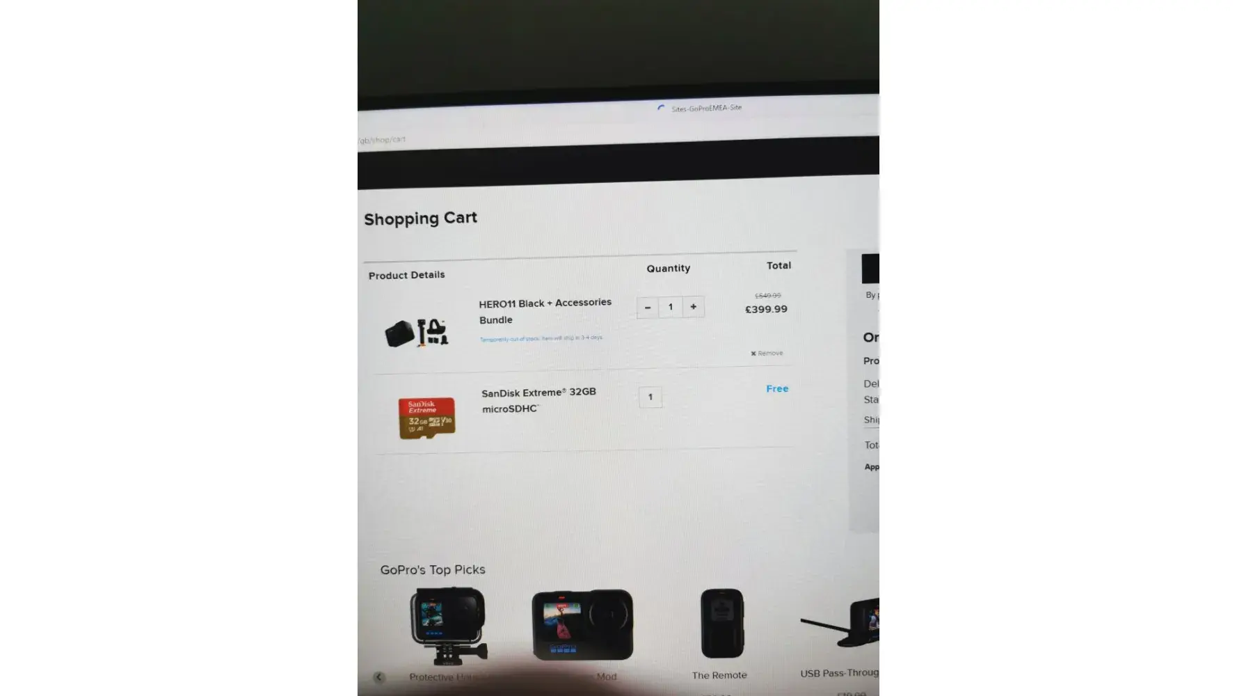 If you buy a Gopro11 with Accessory bundle in your basket it state that and a free Sandisk Extreme 32gb MicroSD. This would be 2 MicroSD cards (one in the bundle kit and one that is free). There is then an option to upgrade one of the MicroSD cards to a 64gb one. I done this but then only received the 64gb MicroSD. I believe I have been misled, as there should be two in my deliver, one 64bg (upgraded from one of the 32gb [either from the bundle or the free one]) and the other 32gb one.