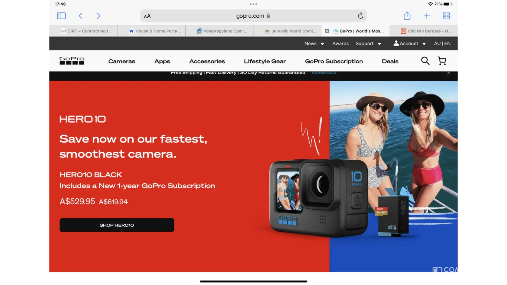 I contacted GoPro customer service and they asked me to send the screenshots to them, which I did, and then he started to give me a whole load of excuses of how mistakes can happen. I explained to him that I understood that and he sent me a 25% discount voucher which actually made the deal more expensive as it took the discount off the original price of A$819.94. He then argued that the 1 year subscription was not included, even though it states that it is included in the sale.