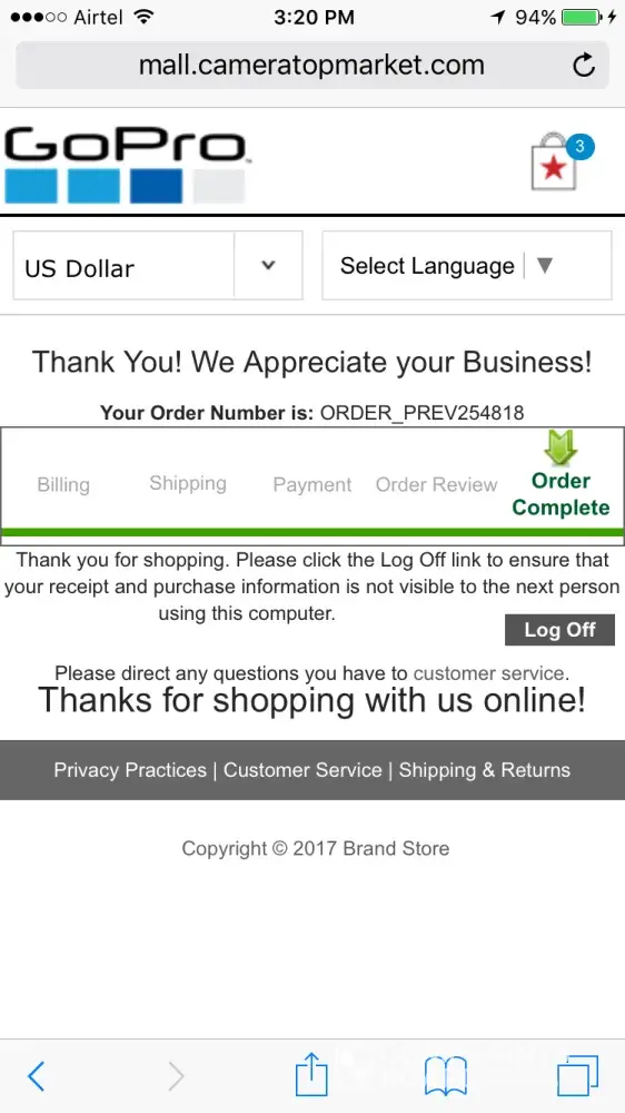 i placed an order for Gopro hero5 from their official site 7 days back.