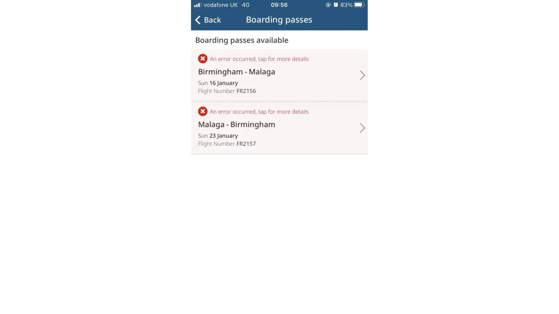 I was unable to retrieve boarding passes although check-in seem to go through,
