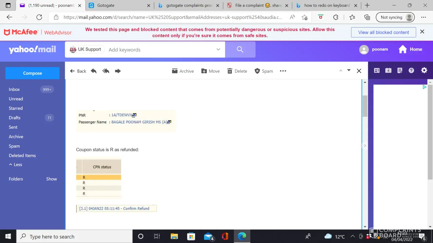 Even when I confronted Gotogate with this information they still insist Saudi airlines haven't paid them.