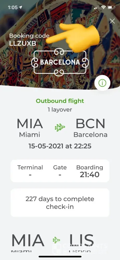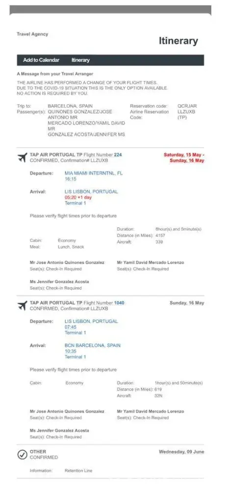 Booking Reference - Flight TQJZER Barceloneta - Miami
