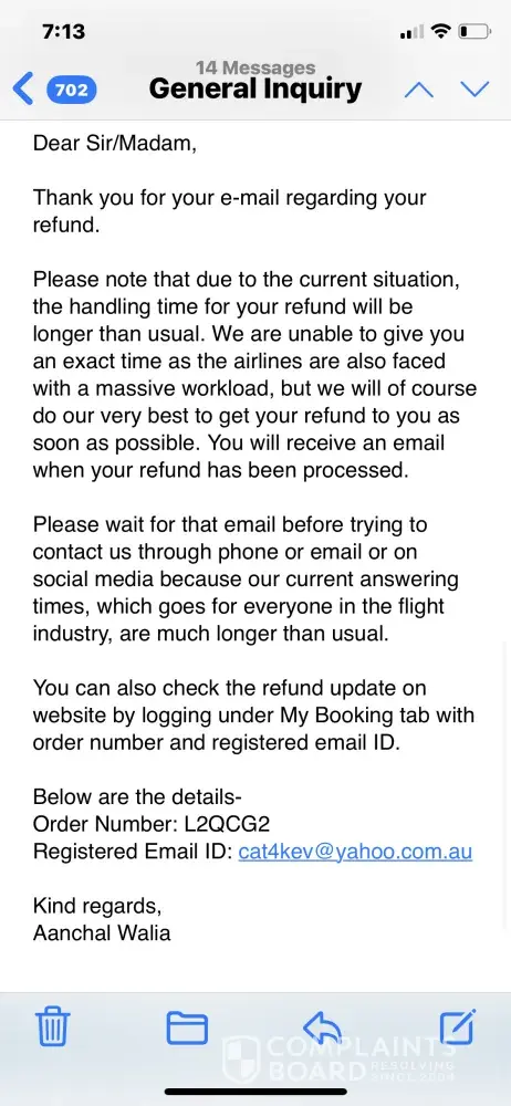 Received an email from Air Canada on 14th May (attached below) saying that I am eligible for a refund for flights in March 2020. I forwarded this to GotoGate and received an automated reply saying that there was a backlog and to be patient. On 13th July I forwarded the email again and received no response. I forwarded the email again on 4th August and received a reply saying that I should contact GotoGate by telephone. Impossible to get through to anyone.