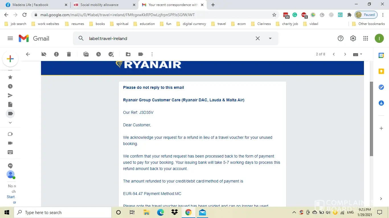 Lack of refund for flight cancelled in March 2020