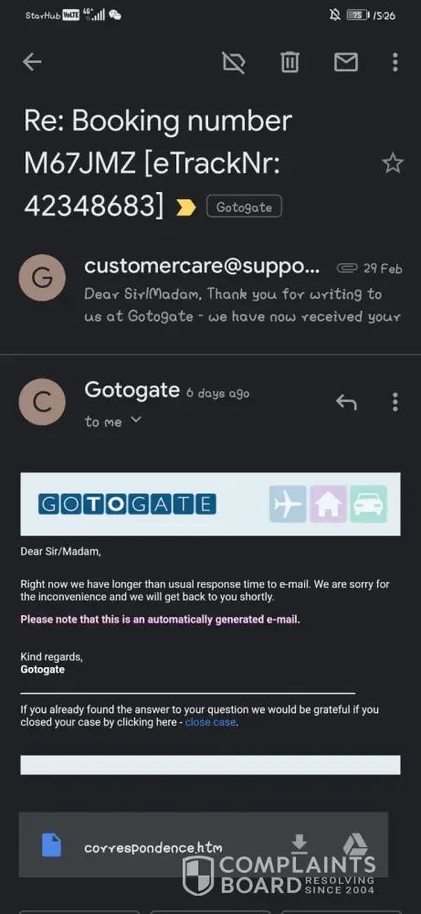 Gotogate also sent me an email.