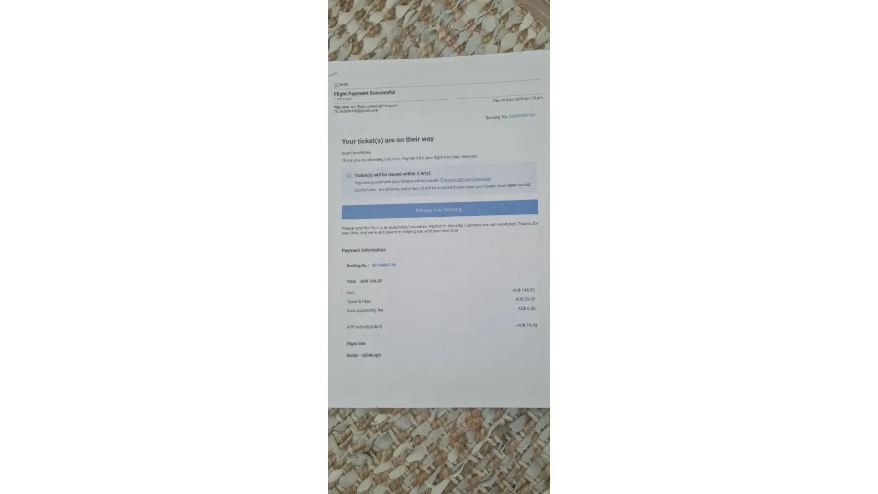 Both were returned as failure to make a booking, so I visited Trip.com and made a booking (Reference BD8CFY) Paid with Mastercard (Euro 74.87)