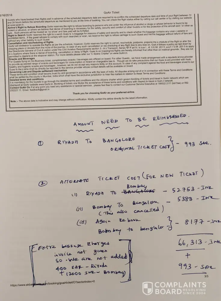 3. I was told by go to gate to purchase another case from blue air for my outbound journey thus incurring more cost even though i had been overcharged by go to gate and that go to gate would investigate how this error and overcharging came about
