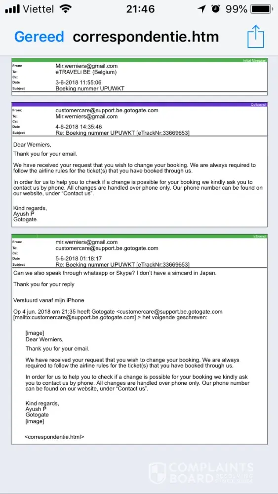 I posted a comment on go2gate as well to warn other travelers. And you replied very quickly.