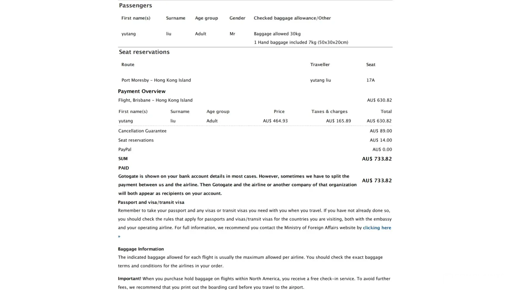 Gotogate Order number: LYXPRA, Airline Booking references: 3G4KTB