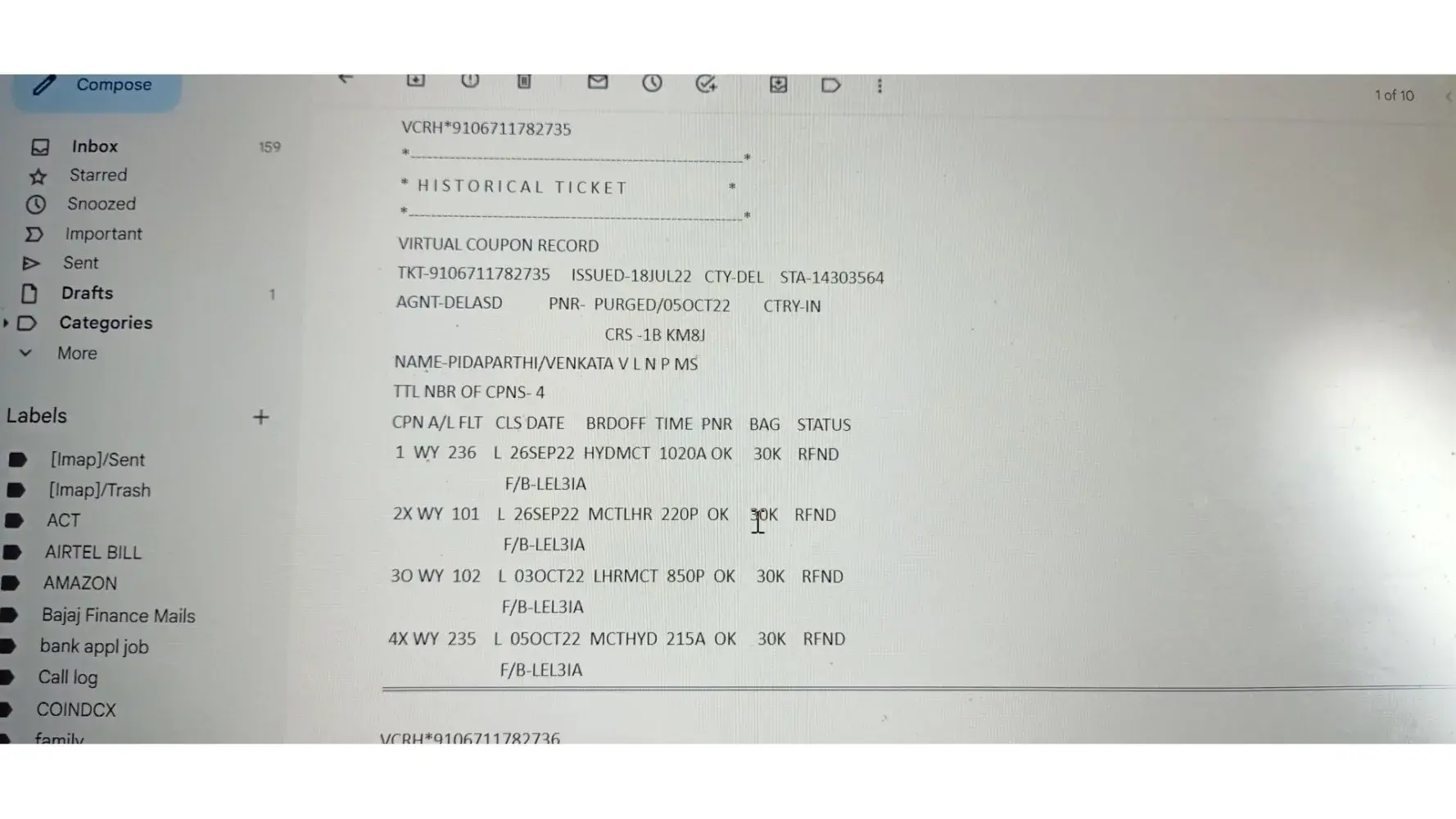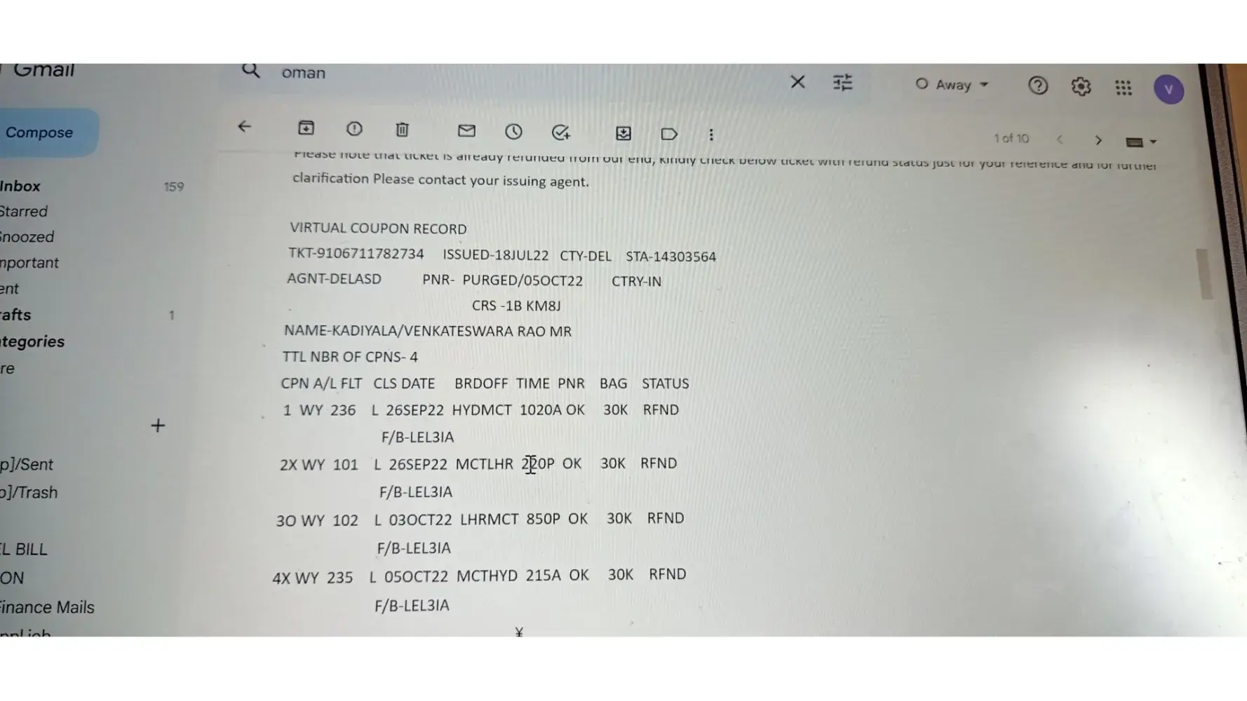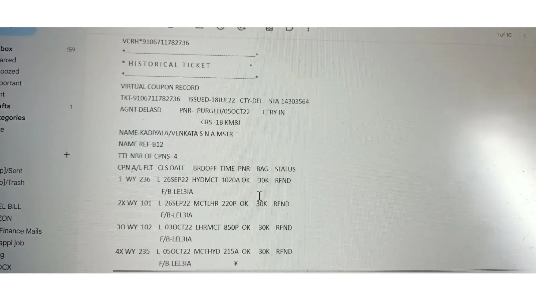 I purchased Flights from Gotogate website on November 14, 2021 for a flight that departed on Dec 30, 2021 (flight ref #33F5M).