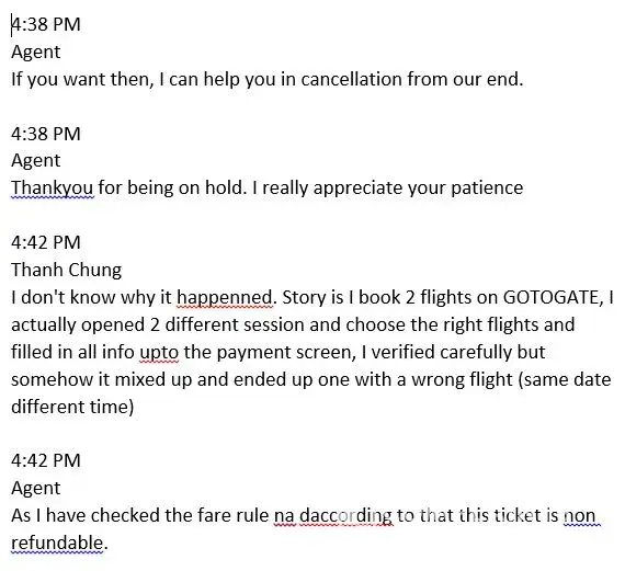 Desired outcome: Gotogate should reimburse the two flights.