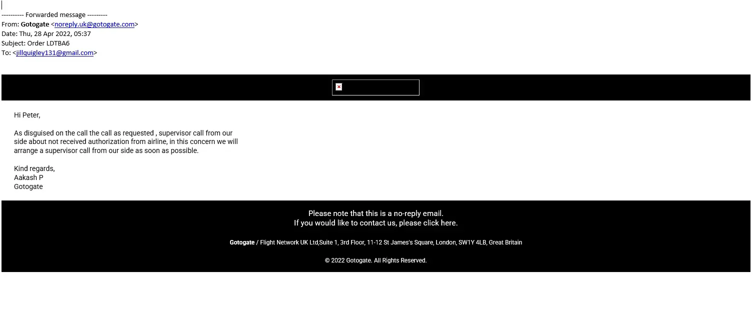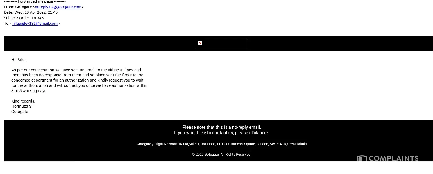 They sent me an email stating that they will not issue a refund because the airline won’t, even tho it’s Gotogate’s inability to fulfil the customer request as asked and promised.