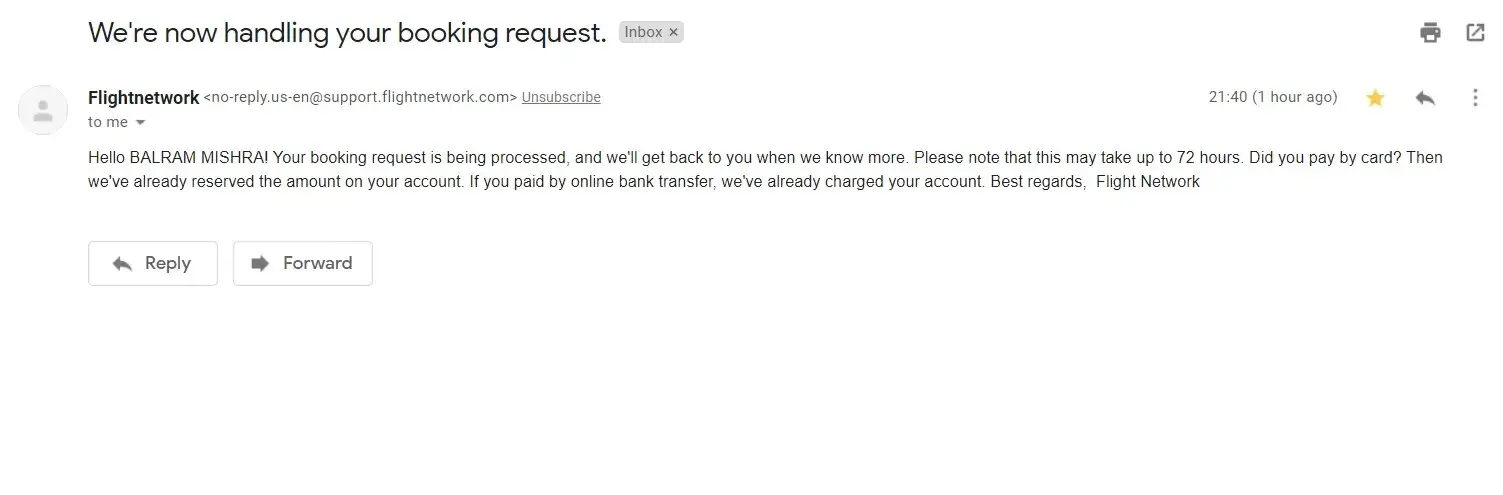 We received this email regarding the flight.