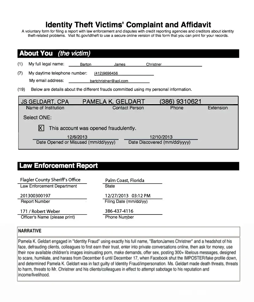 Evidence attached to support this scam report. The attached documents are PUBLIC RECORD, available in legal databases, online through background checks, by request from clerk's of court, and are completely in the hands of multiple agencies, Putnam County, Volusia County and various media sources such as the Wall Street Journal, The Orlando Sentinel, and...