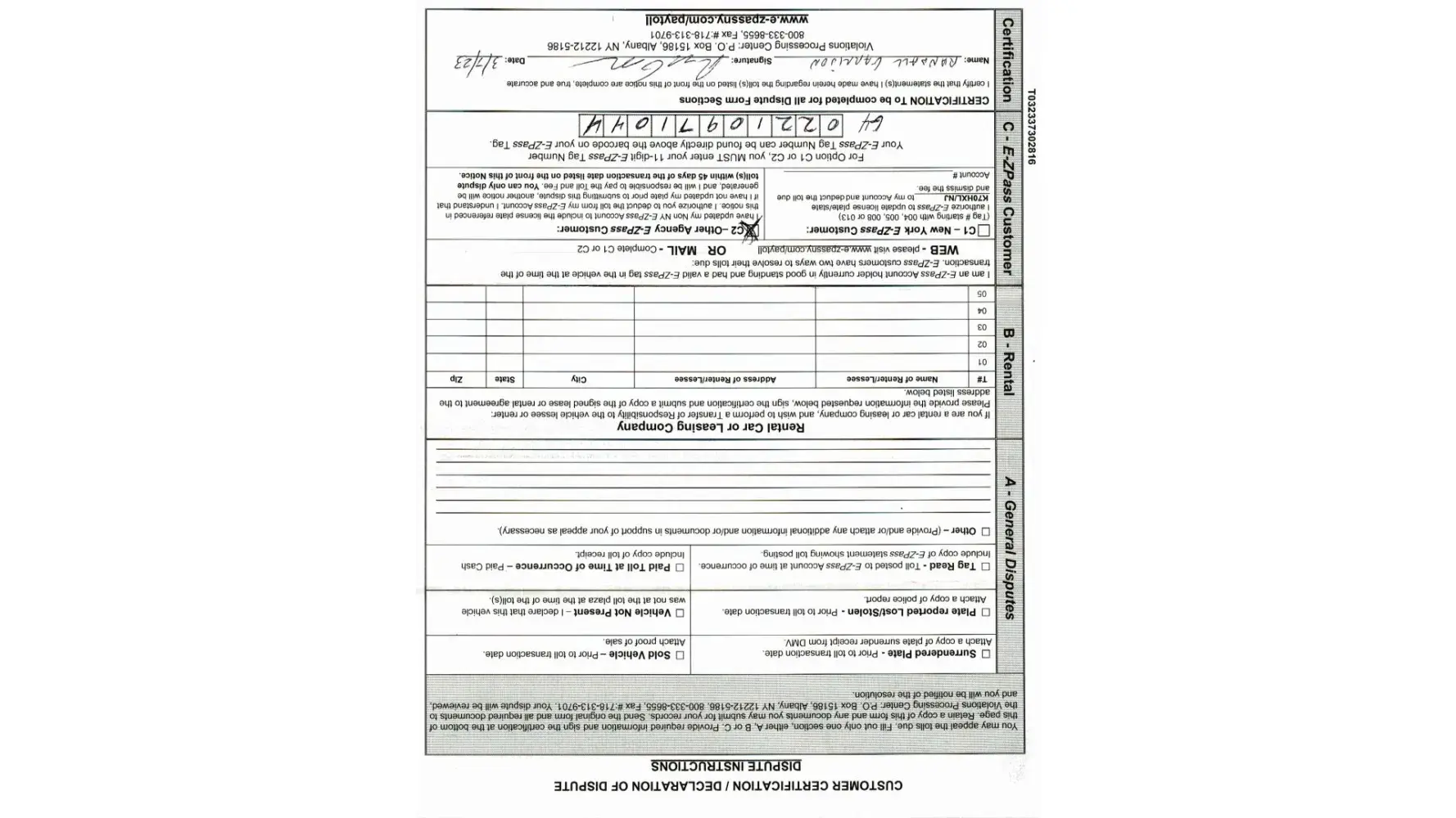 The Port Authority NY NJ - Failed ez pass scan / violations processing center