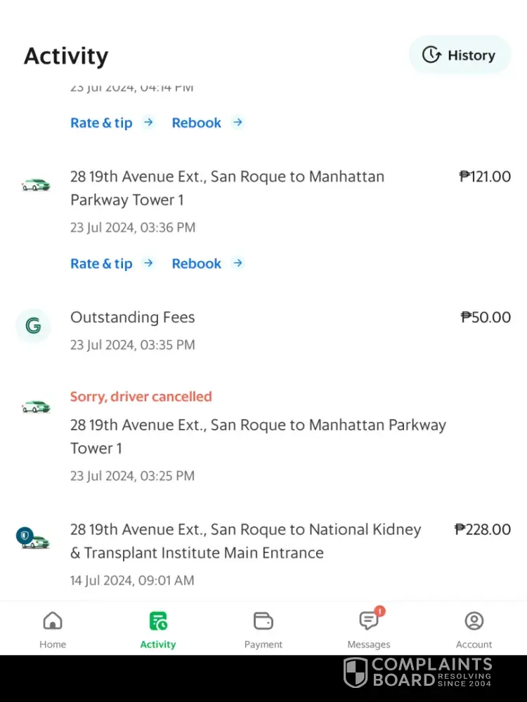 Grab has received 595 complaints on ComplaintsBoard. The first reported case, grabcar driver, was published on Jun 18, 2016, and the most recent complaint, Extremely disappointed with grab’s customer service, was posted on Oct 28, 2025.