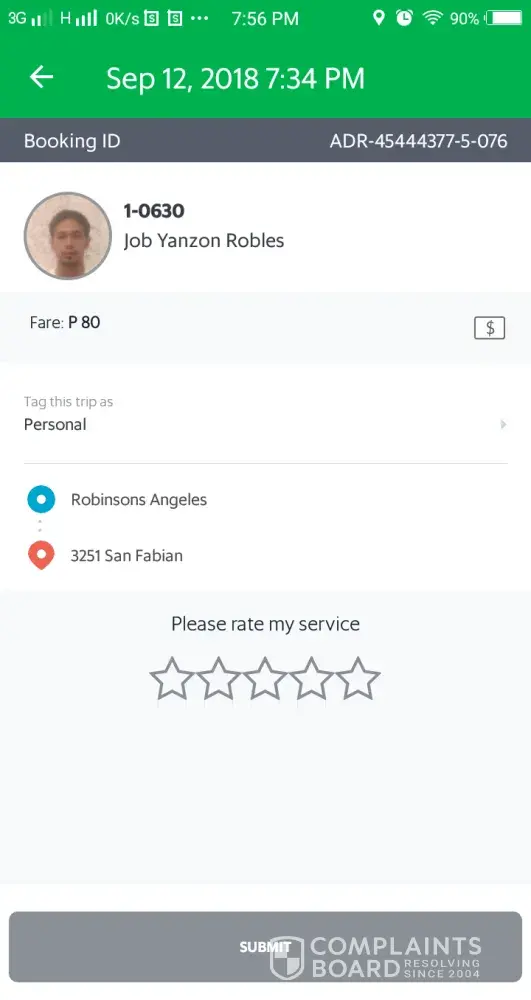 I want to report someone or file a case against him. His name is Job Yanzon Robles. This happened 12 of September 2018. I was at Robinson's Balibago, booked a grab from there to San Fabian Street Barangay San Jose Angeles City. Then this certain grab driver who have a number 1-0630 in his sidecar accepted my booking. Our first interaction was when I asked him, "Kuya pwede po bang daan tayo sa may jenra mall, dun po kase bababa yung isa." 'Cause I was with my boyfriend that time, mauuna kasi syang bababa sakin. The grab driver replied, "traffic dun mam" he's calm naman so hinayaan na namin and we understand na traffic nga naman doon. Dumaan kami ng highway. So nung malapit nakami sa street namin pumara nako sa kanto para sana maihatid ko muna sa sakayan ng tricycle boyfriend ko. Nag-abot ako ng 100php because my fare was 80php. I was expecting an exchange of 20php pero gaya ng nakagawian ibabalik ko lang sa driver yung sukli as a tip sana and mag-thank you ako for accepting my booking. But then walang inabot. So I politely asked him "kuya magkano ho yung bayad?" he replied, "80pesos tapos 20pesos sa booking fare" nagtaka ako kasi wala namang ganun before. Madalas ako mag grab pero bat walang sinisingil sakin na ganun? He replied, "hindi lang nakinig sa orientation mga yun!" Galit na sya sumagot. I calmly replied na, "kuya sana sabihin mo ng maayos. Kase matagal nako nag gagrab pero ngayon ko lang naexperience yan. Tsaka di na nga ako nagpababa sa mismong destination ko pero buo binayad ko" he replied with an angry expression, "edi magreport ka! Tawag ka pa sa hotline!" So I replied, "sge! Irereport talaga kita! Ugali mo ganyan! Nagtatanong ako ng maayos!" Nagalit narin ako nun. And then sumagot pa sya ng, "Edi magreport ka! Nagtatago kasi kayo e!" Dun nako nashock. Bat namersonal bigla? Kilala nya ba kame? I was like, wtf? Ano ugaling meron sya? FYI ho, legal ho kame both sides. Sa sobrang gulat ko sa sinabi nya, di na'ko nakapag react tapos agad na sya umalis. Natameme ako sa sinabi nya. I have witnesses. May mga tricycle drivers sa kanto na binabaan nya. And yung mga taong nandun sa may bandang kanto. Halos kilala ako ng mga tao dito sa barangay namin kase dito na'ko lumake. So sana maaksyonan agad to. I am willing to go to your office anytime. As soon as possible sana. Kase if my report will be ignored, madadamay lahat. Kase hindi dapat ganyan ibang mga grab drivers (hindi ko po nilalahat) naorient si manong ng may booking fare, pero hindi naorient ng tamang asal sa mga customers which is dapat common sense nalang. I am not complaining about the 20pesos. I am complaining Mr. Job Yanzon Robles. Hope you would take action as soon as possible. And please, I want to talk to him personally in your office.