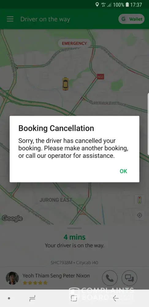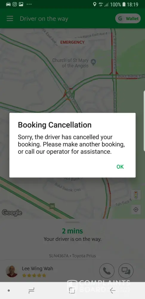 driver's cancellation of booking